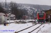 ... endlich mal was los am Gleis/Bahnsteig 2 in Bad König VT 112 wartet auf die Kreuzung mit einem Sonderzug am 27.02.10 ... |